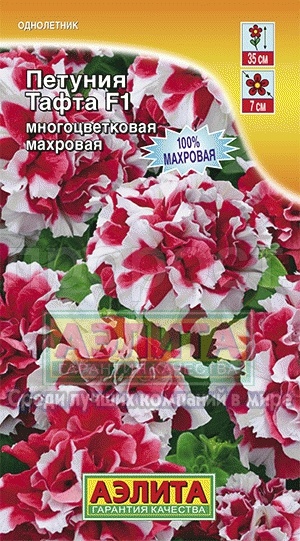 100% махровая. Гибридная обильноцветущая петуния с ранним и продолжительным цветением. Формирует кустик до 35 см в диаметре, сплошь усыпанный цветками Ø 6-7 см так, что они почти полностью скрывают листву. Растения плотные, хорошо ветвящиеся, с крепкими побегами. Хорошо переносят воздействия непогоды в виде дождя и снега, неприхотливы. Отлично подходят для выращивания в любых садовых контейнерах, подвесных корзинах и кашпо, великолепны в ковровых посадках на клумбах и в бордюрах.